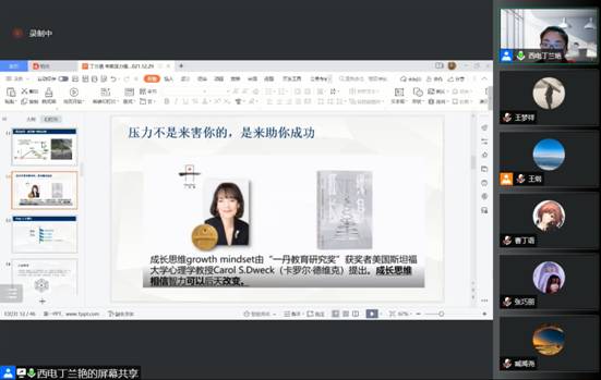 12月29日19点,物理与光电工程学院文明素养大讨论系列活动第二场在线上顺利开启。特邀心理健康教育中心丁兰艳老师为本科生讲授心理健康公开课,吸引了本科生和员工家长在线参与。活动由20级辅导员王纲主持。首先,丁兰艳老师从专业的角度解读了压力,详细介绍了压力产生之后常见的身体和心理发出的信号,有助于我们正确、快速的识别和判断。随后,针对近期疫情不确定性带来的考前压力,丁老师着重从面对压力、接受压力、处理压...