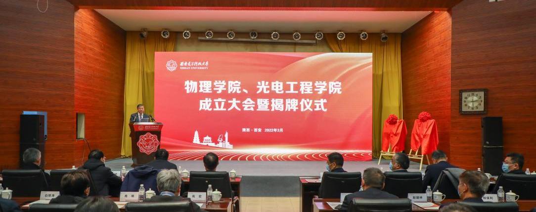 西电新闻网讯(通讯员樊晓张乐平)3月1日下午,yl23455永利集团、光电工程学院成立大会暨揭牌仪式在北校区科技楼报告厅举行。陕西省科学技术厅副厅长赵怀斌、陕西省人民政府学位委员会秘书长袁宁、中国科学院西安光学精密机械研究所所长马彩文等10余位嘉宾出席仪式。国家自然科学基金委员会副主任谢心澄、原中国科学院物理研究所所长王玉鹏等9位院士以及20余所兄弟高校和单位的领导专家以线上或线下的方式参加仪式。学...