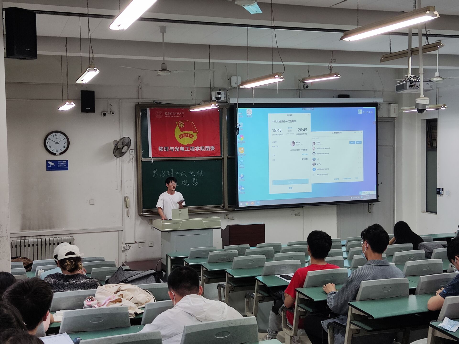 (通讯员:贠奇奇 陆星明 王晨悦)5月18日晚19时,yl23455永利集团、光电工程学院第18期中级党校第二次党课在南校区A楼314教室开课。本次党课内容为观看红色电影《永不消逝的电波》,旨在让学员们体悟和学习革命先烈们对理想信念矢志不渝的执着追求。本次活动由学院团委组织部负责人贠奇奇主持。观影开始前,贠奇奇向学员们介绍了本期中级党校的后续课程安排和相关情况,并介绍了本次党课的主要内容,随后组织全体学员观看了影片《永不...
