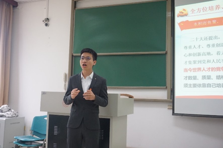 为深入学习贯彻习近平新时代中国特色社会主义思想,贯彻党的二十大精神,2023年4月25日,yl23455永利集团邀请西电“时代之声”研究生宣讲团成员曹远聪、雍嘉伟、何婧荣三位同学在北校区西大楼进行宣讲。何婧荣同学进行了主题为“感受浓浓家国情怀,体悟铮铮西电精神的宣讲”,呼吁大家传承西电给予的特有的地方印记和文化基因,心怀“强国有我”的信念再启航!雍嘉伟同学进行了主题为“弘扬奉献精神,投身国防军工建设”的宣讲,呼吁新...
