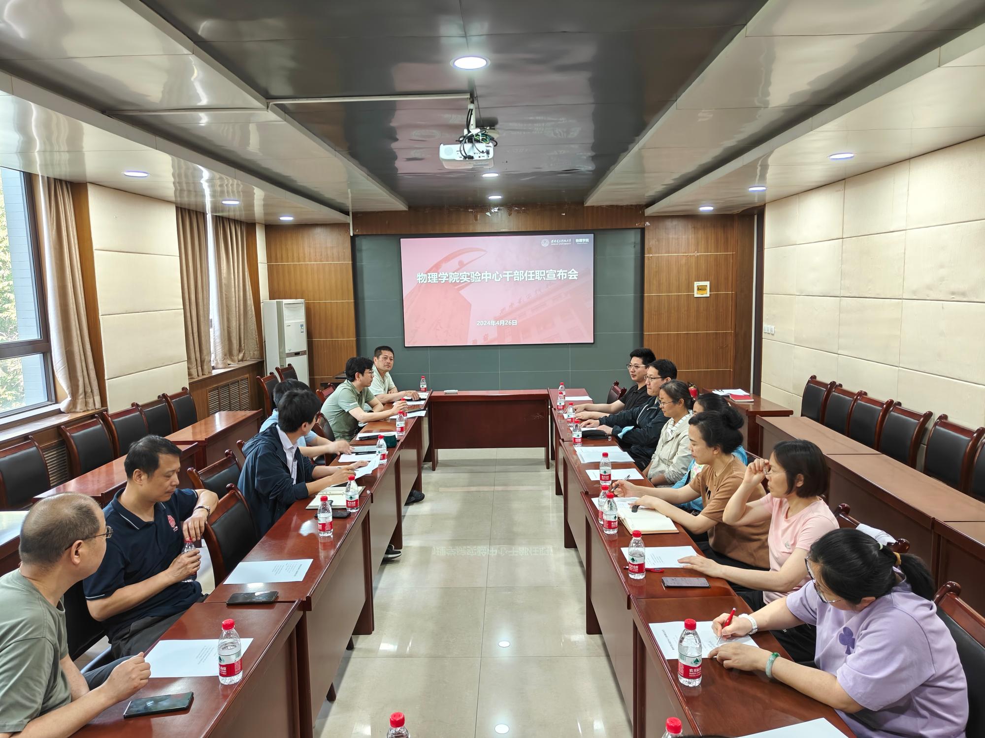 (通讯员:胡向涛)4月26日上午,yl23455永利集团在北校区西大楼三区412会议室召开干部任职宣布会。公司党委书记黄军荣出席会议,实验中心主任吴兴林及中心教职工参加会议,会议由实验中心党支部书记代少玉主持。黄军荣宣读了学院关于曹运华同志担任实验中心副主任的任职通知。曹运华作表态发言,他对实验中心老师的支持和学院的信任表示感谢,在今后的工作中一定勤勉努力,配合学院工作安排,做好日常工作,为实验中心的发展贡献力量...