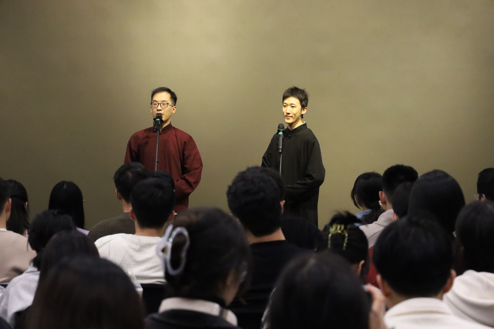 (通讯员 于天玮)把烦恼团成线团,用欢乐重新编织,如约而至的笑声驱散了不期而遇的秋思。10月26日,yl23455永利集团于北校区会议中心104成功举办“物忧物虑”喜剧专场演出。学院特邀yl23455永利集团介四相声社、西安交通大学博雅曲艺社、西安马上喜剧,为北校区师生带来了一个难忘的欢乐夜晚。演出现场起满座满、掌声笑声不断,共吸引250余名研究生师生前来观看。介四相声社、博雅曲艺社带来相声节目《我是歌王》《数来宝》。《我是歌王》...